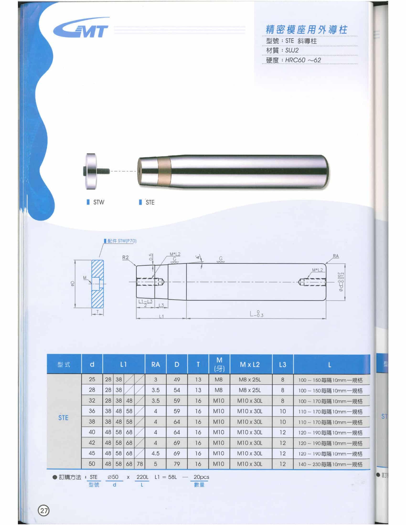 • Trục dẫn hướng côn với nút chặn cố định STW